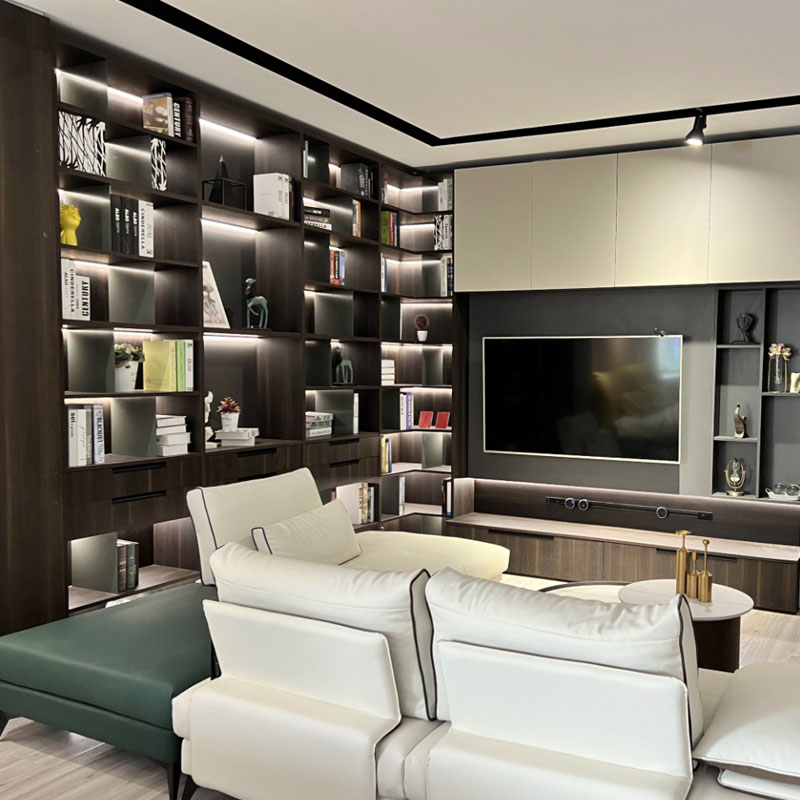 Si Sinoah ay buong pagmamalaki na propesyonal sa pagbibigay ng pasadyang mga modernong cabinets ng silid sa mga tagabuo, mga kontratista, developer at may -ari. Gumagawa si Sinoah ng mga modernong cabinets ng sala sa pamamagitan ng paggamit ng iba't ibang mga materyales tulad ng malemine, PVC, PET, lacquer, baso, atbp ayon sa mga kinakailangan at badyet ng mga kliyente. Pinili namin ang mga kwalipikadong hilaw na materyales upang matapos ang mga katangi -tanging mga kabinet at magdala ng komportableng bahay sa aming mga gumagamit. Ang mga kontemporaryong cabinets ng estilo para sa sala ay pangunahing ginawa mula sa kahoy na malemine at materyal na salamin.