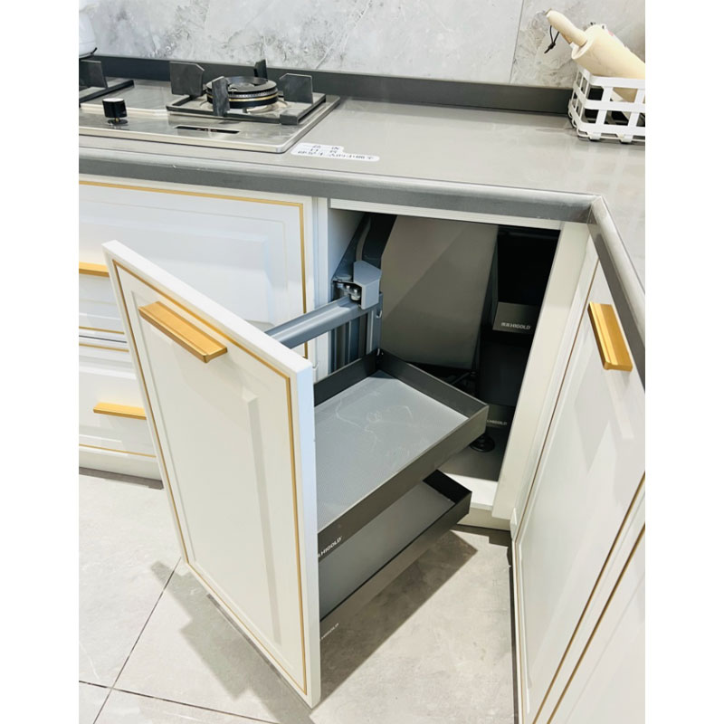 A: Ang kulay ng white kitchen cabinet ay may iba't ibang opsyon sa Sinoah cabinet, maaari mong piliin ang gusto mo, karaniwang iminumungkahi namin ang puti na malapit sa bigas.