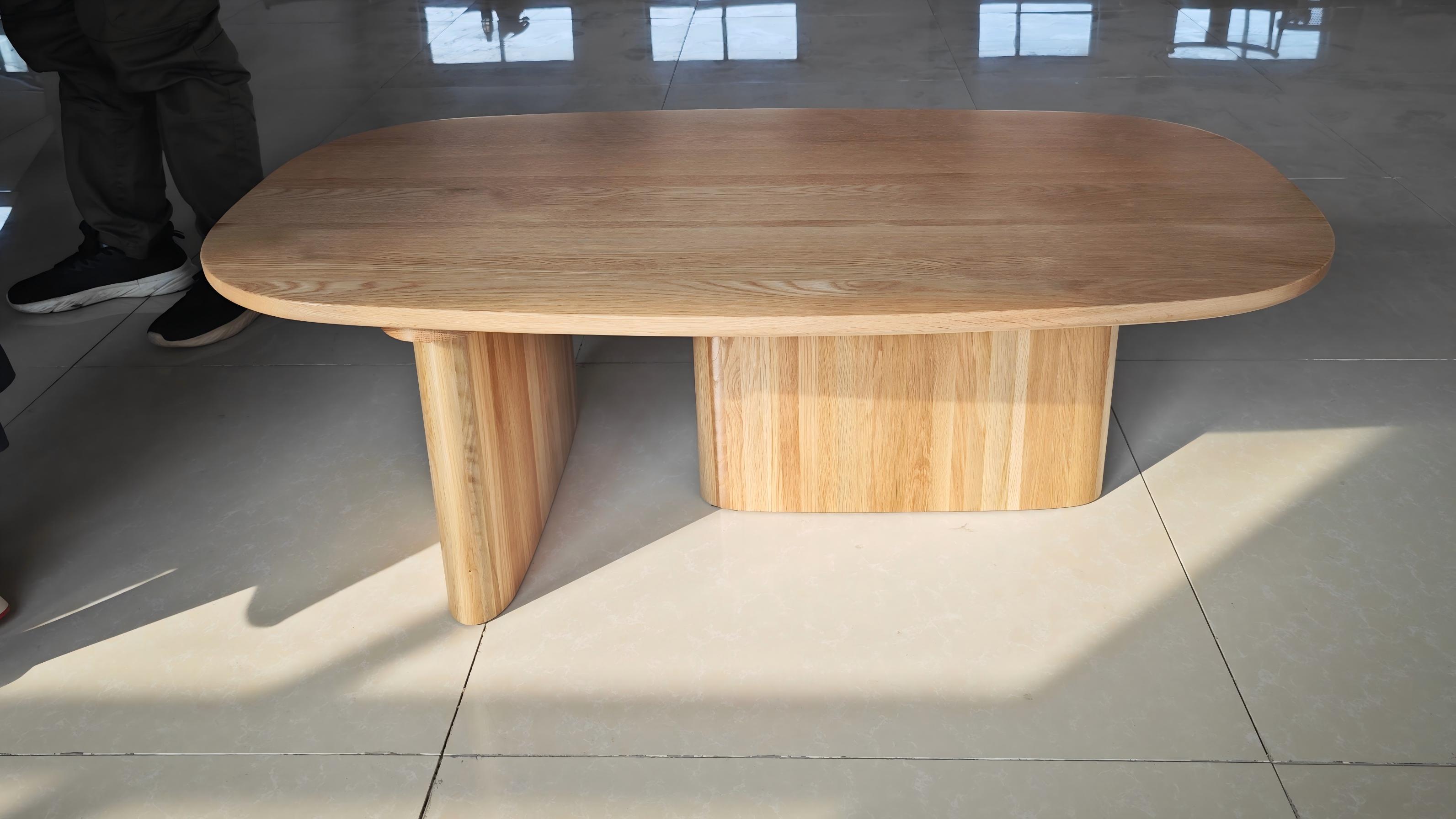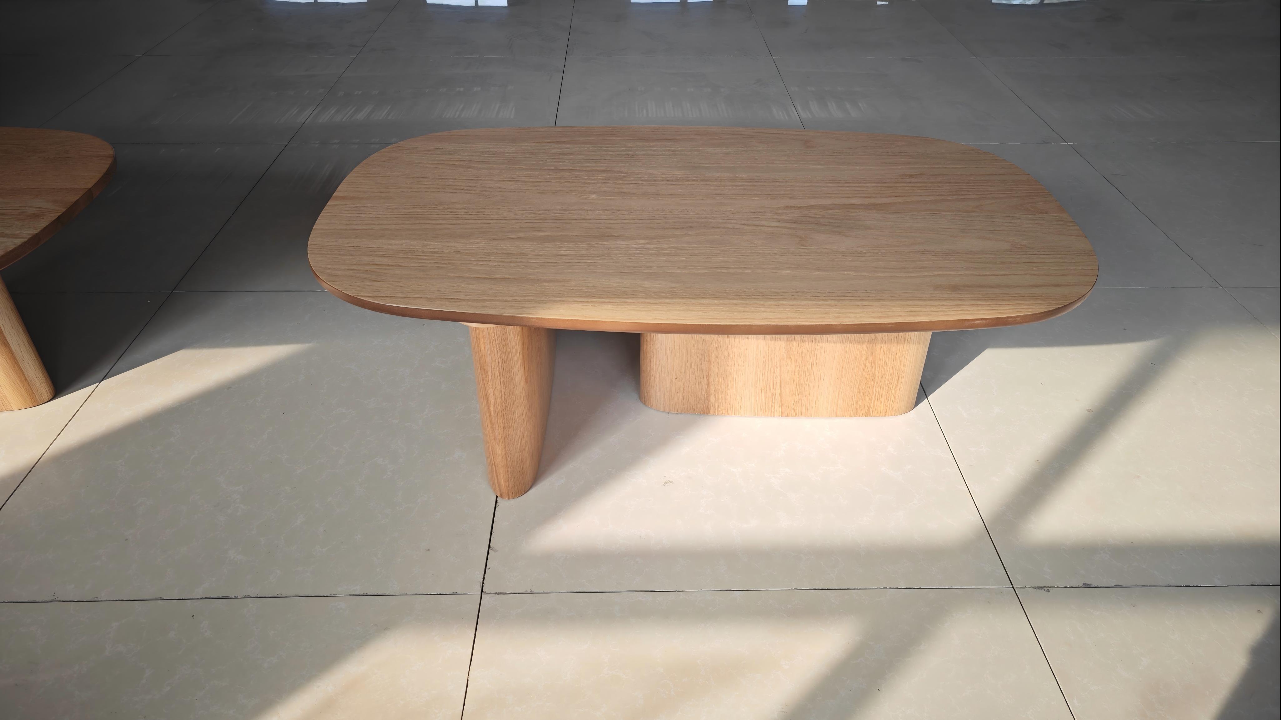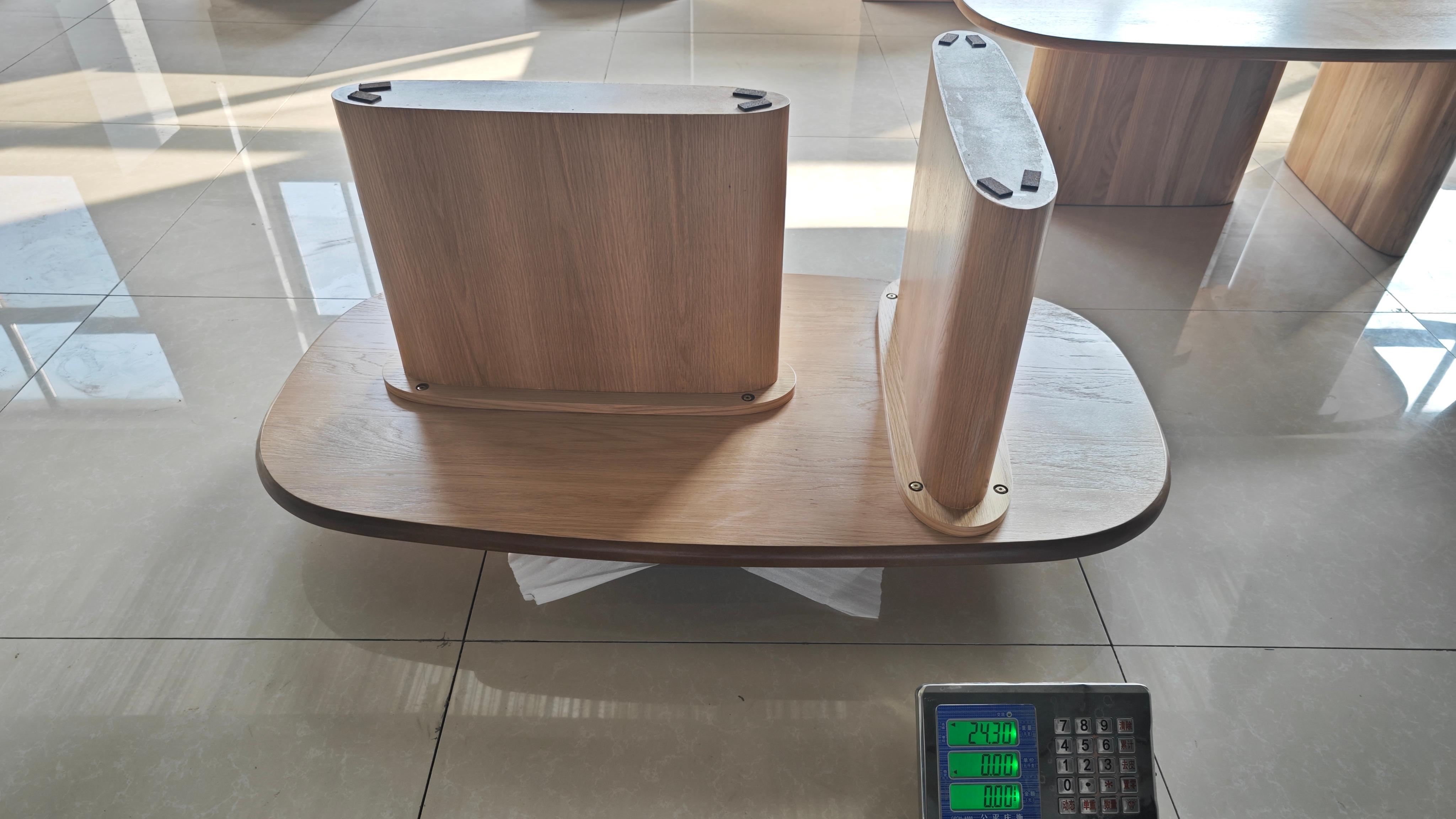 Ipinagmamalaki ng talahanayan ng kape ang isang malambot at kontemporaryong disenyo, na nagtatampok ng isang magaan na kayumanggi na kahoy na pagtatapos na nagdadala ng init at pagiging sopistikado sa anumang silid. Ang hugis -itlog na hugis at makinis na mga curves ay lumikha ng isang biswal na nakamamanghang focal point, ginagawa itong isang perpektong karagdagan sa anumang panloob na dekorasyon. Ang matibay na mga binti ay nagsisiguro ng katatagan, habang ang patag na ibabaw ay nagbibigay ng maraming silid para sa iyong pang -araw -araw na mahahalagang, mula sa mga magasin hanggang sa mga malalayong kontrol.