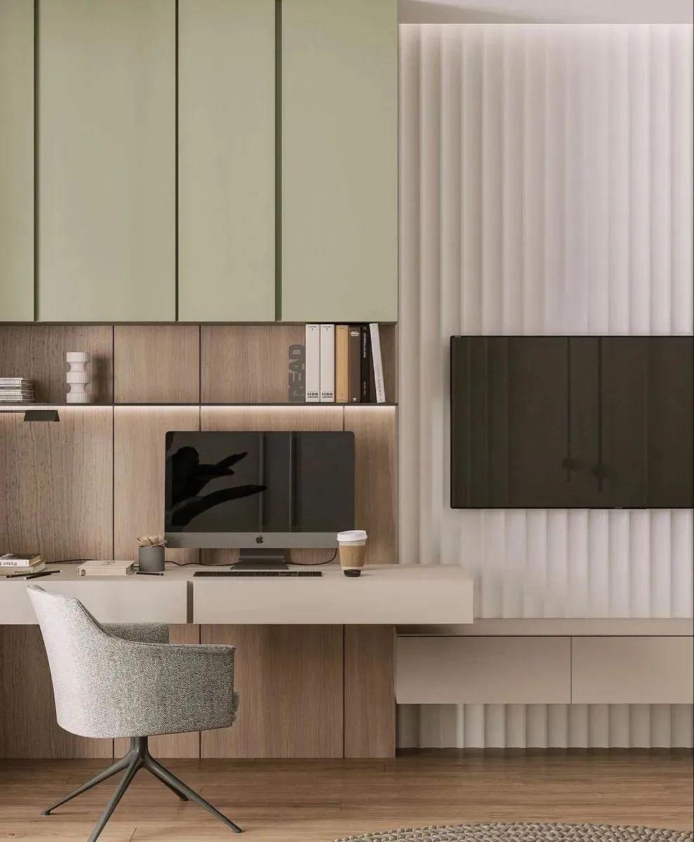 Ang pagtatrabaho mula sa bahay ay hindi na bihira. Para sa mga pamilya na hinahabol ang mga solusyon sa sariling katangian at pag-save ng espasyo, ang mga mesa ay maaaring ipasadya nang magkasama sa mga bookcases at magpakita ng mga cabinets. Ang makinis na disenyo ay hindi sumasakop sa espasyo.