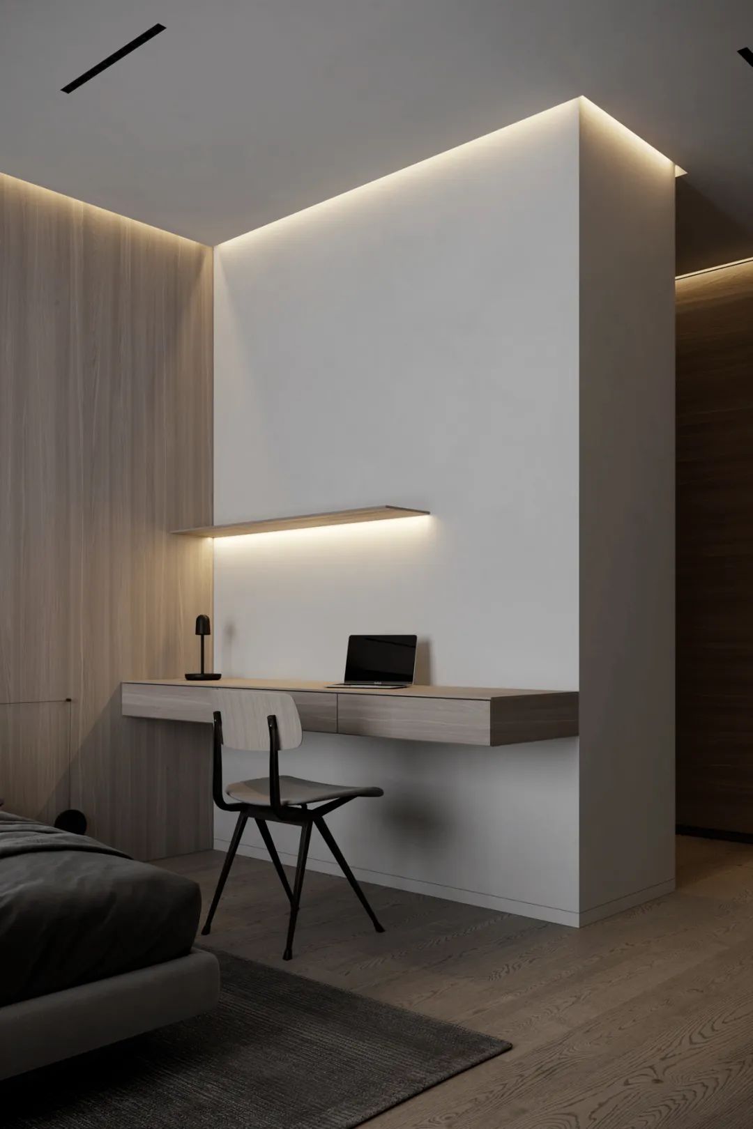Ang disenyo ng pag -aayos ng desk sa dingding upang makamit ang isang nasuspinde na epekto ay maaari ring mailapat sa iba't ibang mga katulad na cabinets, tulad ng mga talahanayan sa kama at mga kabinet ng vanity.