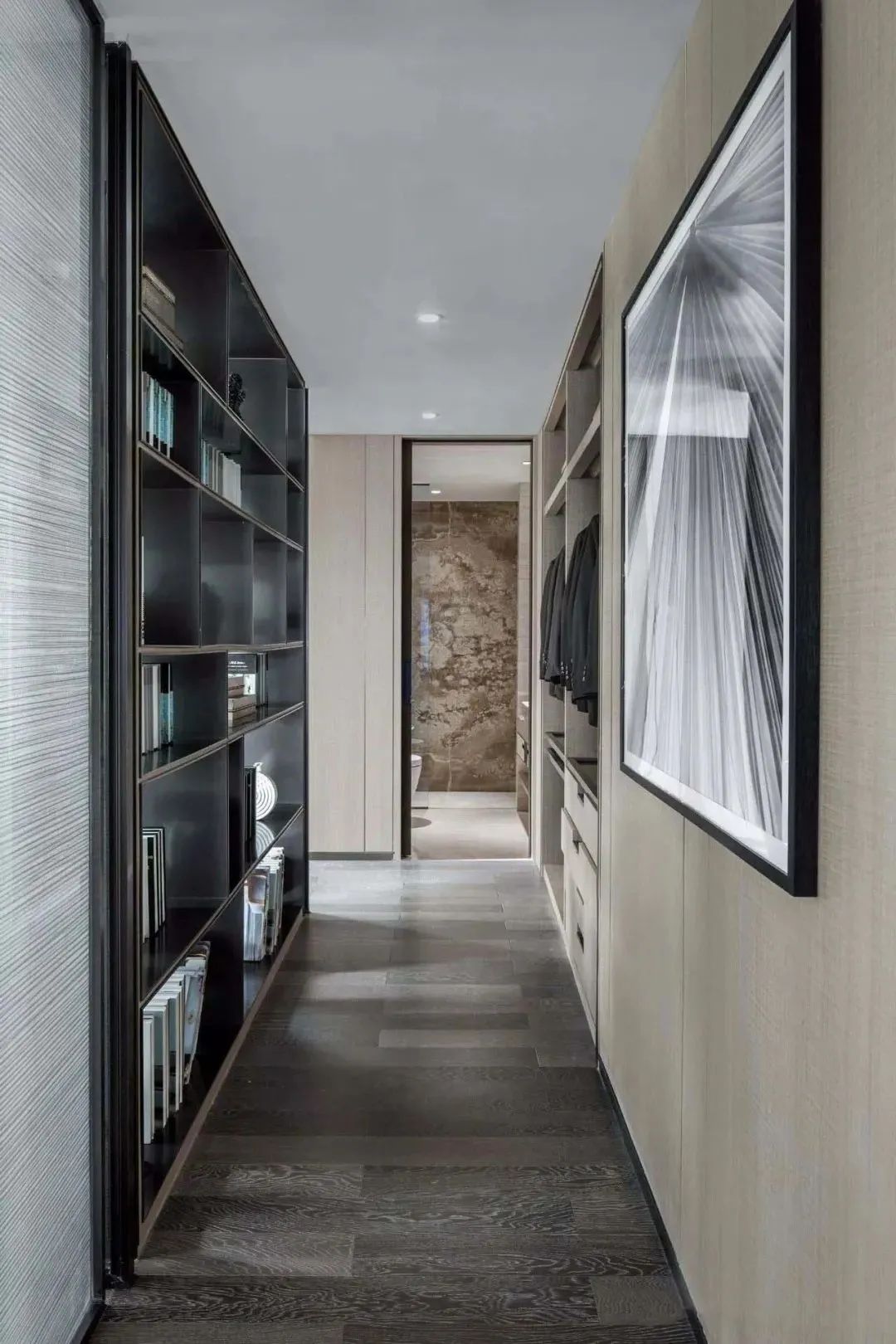 Sofa Wall Bookcase:Mag-install ng isang aparador sa dingding ng background ng sopa ng sala, na may built-in na disenyo ng pag-save ng mas maraming puwang. Ipares ito sa isang lampara sa sahig, at maaari kang umupo sa sofa at basahin.